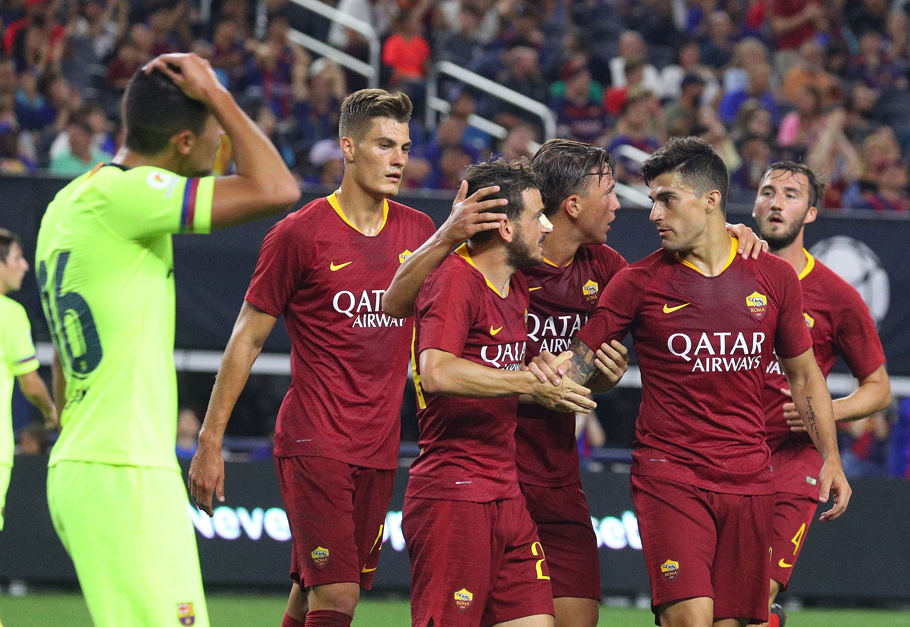 A Roma teve uma pequena vingança sobre o Barcelona na noite desta terça-feira, na cidade norte-americana de Arlington. Uma semana após anunciar o atacante brasileiro Malcom como reforço e ver o ex-jogador do Bordeaux ser contratado pelo Barça, o time italiano conquistou uma vitória por 4 a 2 sobre o espanhol, de virada, pela amistosa Copa Internacional dos Campeões.